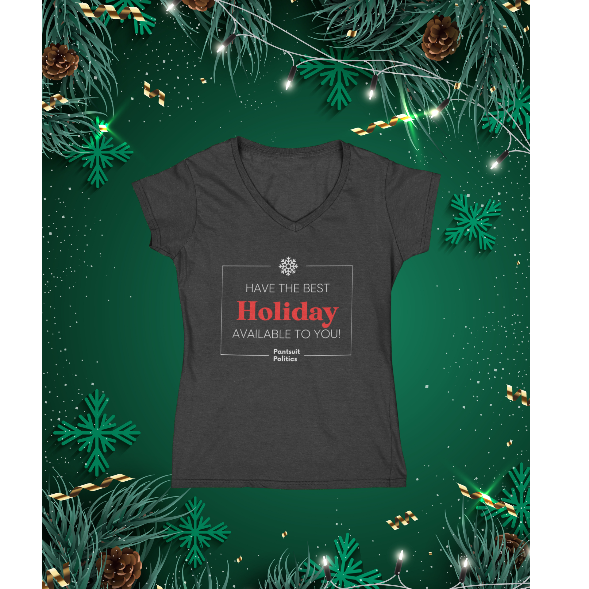 Rock your realistic holiday expectations in style! This gorgeous women's v-neck features "Have the Best Holiday Available to You!" in a cut that's actually designed for people with curves. The podcast logo sits perfectly without looking awkward, and the v-neck is just right - not too deep, not too high.
